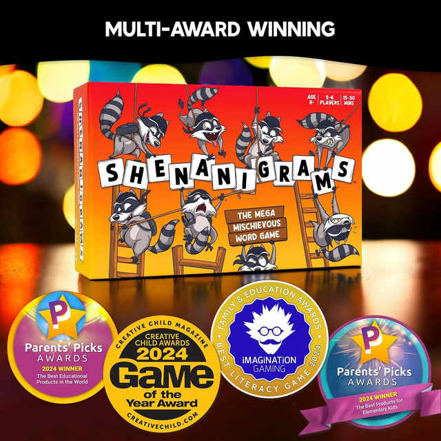 SHENANIGRAMS is a mega-mischievous, tile-based word game that all ages will LOVE!