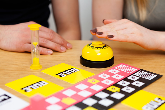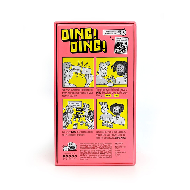This is a noisy party game with one super, simple mission – you can’t say “umm”. Two teams race to get their pieces to the end of the board first. They’ll do it by describing as many strange sounding objects as they can, from the random cards they pick up. The only problem is: you can’t say “umm”. Every time you do, the bell will sound, adding to the pressure! As each team gets closer to the end, more and more sounds become off limit, making it a frantic dash to the finish line.